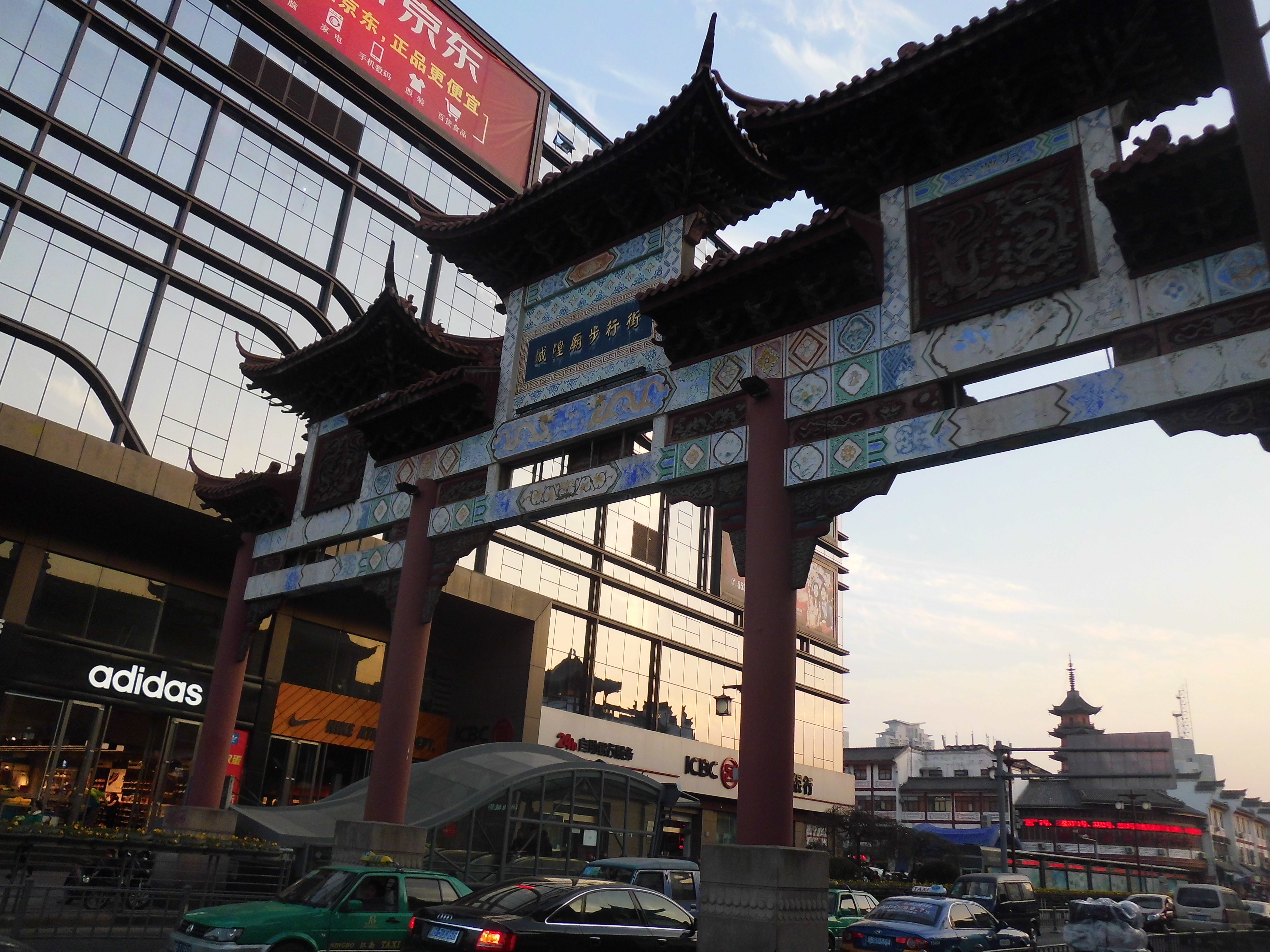 A bit further from the craziness of Tianyi Square, there’s Gulou station. While Gulou leads to the Drum Tower and the shops and restaurants in the alley within, there is a more secluded place nearby with more shopping options. Disembarking from Exit H and going south, one can eventually see a tall, thin bright red tower with black tiled roof and awnings rise up in the distance. Before reaching the pagoda, though, there is a large shopping center that must be dealt with. Formerly a Buddhist Temple, the Chenghuang Temple Market is a bustling complex of various knockoff clothing shops, fast food restaurants – think McDonald’s and Yong He Wang – and very little signs of its more humble past.