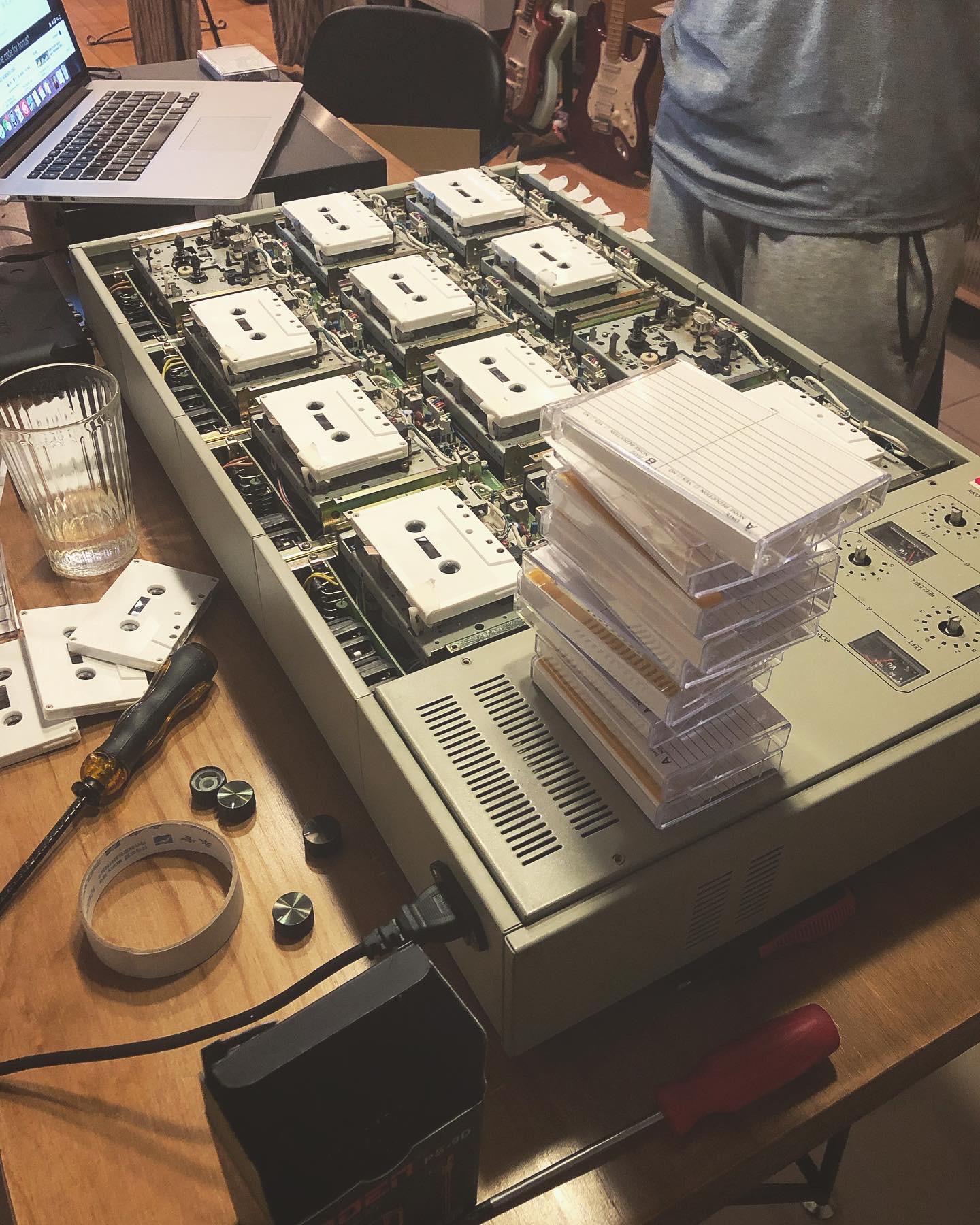 After investing in the equipment needed to duplicate cassettes — a trusty Nakamichi tape deck for recording a master tape from digital file, and 2 duplicators — they were able to release music by lost memory machine (one of Dave’s bands) and producer thruoutin, a long-time friend and collaborator.