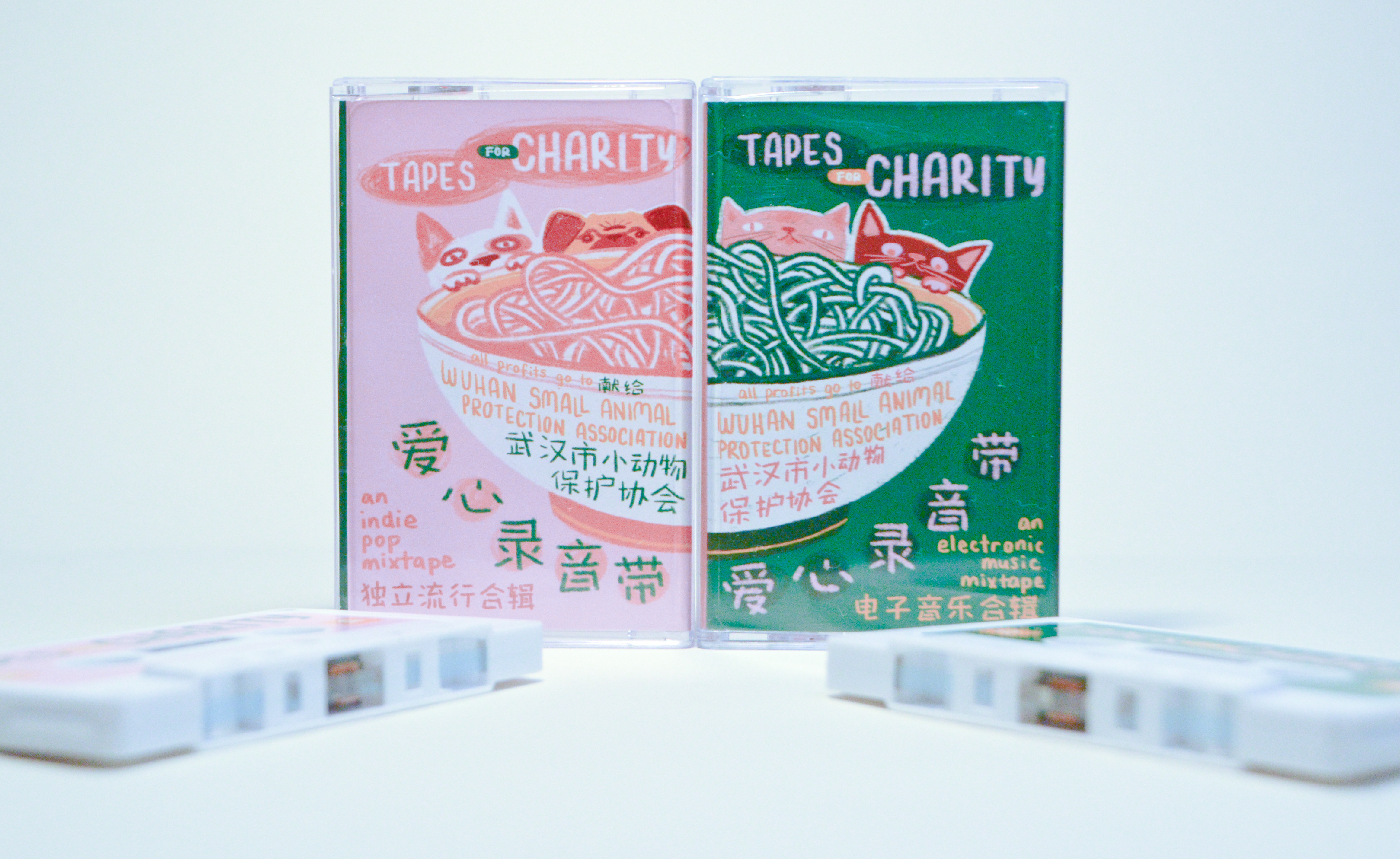 Teaming up once again with thruoutin, they turned what was to be a one tape release into a two tape one, working in their apartment to churn out 200 tapes, complete with specially designed cases that, when placed next to one another, show small cats and dogs around a bowl of Rè Gān Miàn (热干面; Hot-Dry Noodles), an Wuhan specialty. When the tapes sold out in minutes online, they geared up for round two.