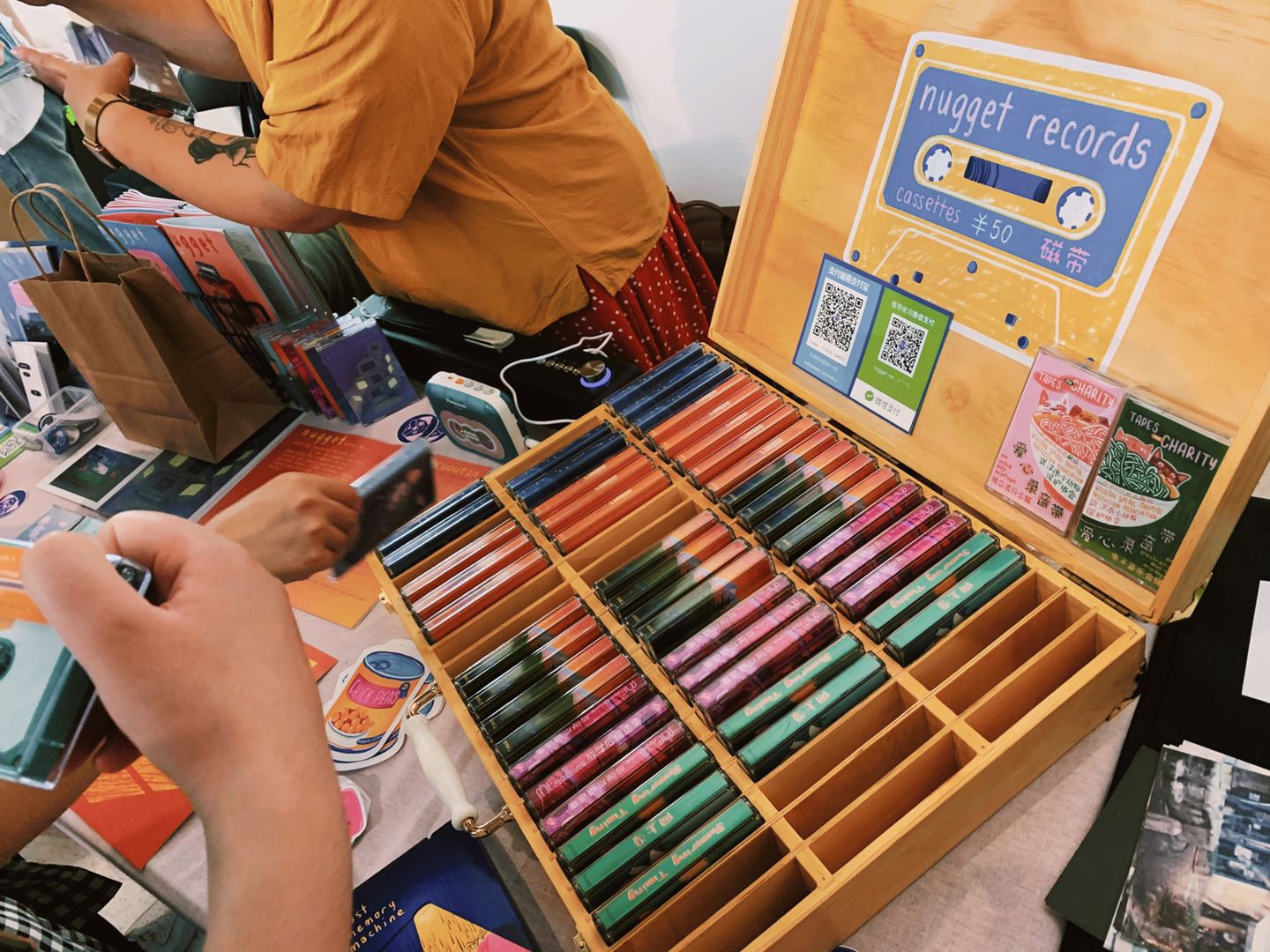 Fast forward to today, and Jen says nugget records has produced 4000 cassette tapes for themselves, other labels, and artists around China, including 11 of their own tape releases, 4 zines, and a branded tape player.