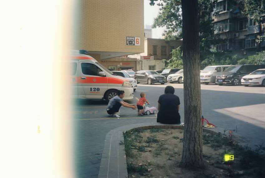 Family playing with a child outside my apartment complex, Beijing 2022.