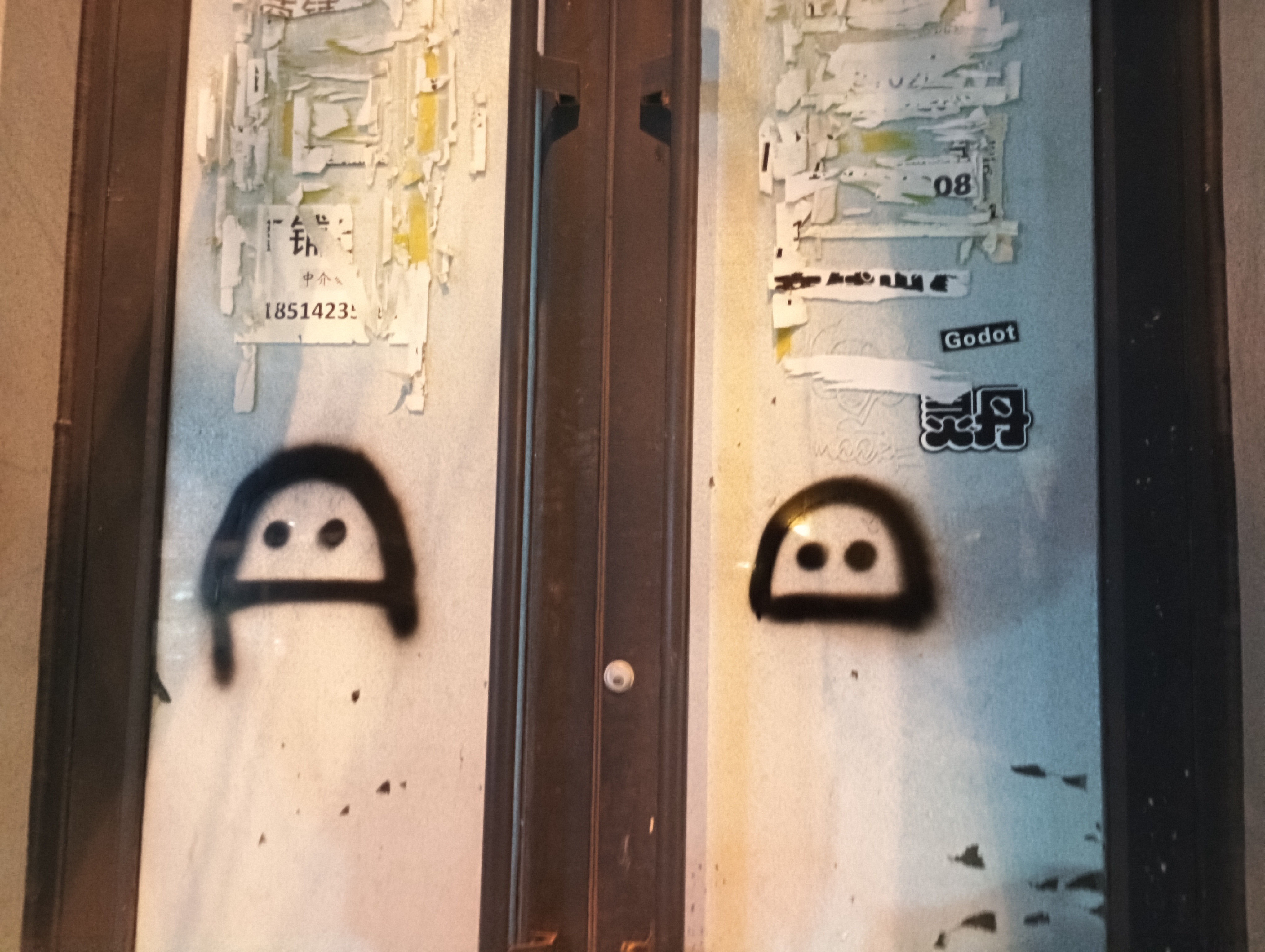 Despite their prolific output, there wasn’t much in the way of who the duo were or why they were tagging. The slogan accompanying Gadot referenced Waiting for Gadot, a 1953 Irish play written in French, plus there was the fact that Meow Bar and a café named Waiting for Gadot stood within 800 meters of one another where the action was most pronounced. Tie in a rendition of the play put on by Fengchao Theatre around the time Meow and Godot popped up, and you’ve got a case for guerrilla marketing.
